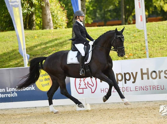 Black Bond übertraf alle Erwartungen als gekörter Hengst und OÖ Landeschampion 2023. Eine strahlende Zukunft im Dressursport ist von unserem Star zu erwarten. Dies bewies er einmal mehr im April 2024 in Stadl Paura mit einem Siegesritt, der Großes verspricht.